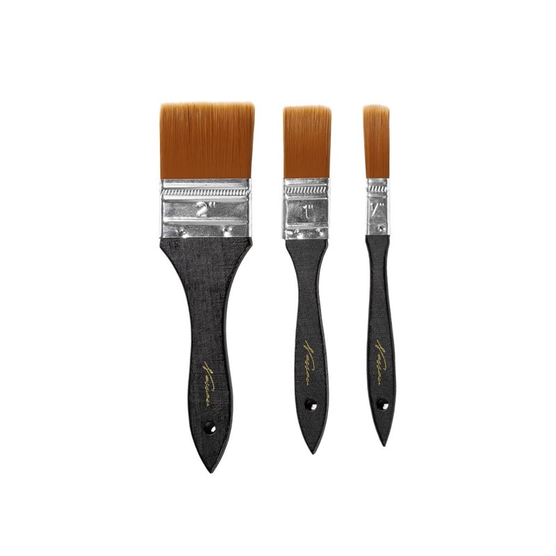 W zestawie pędzelek cienki, średni i gruby.Pędzelki drewniane z włosiem naturalnym.